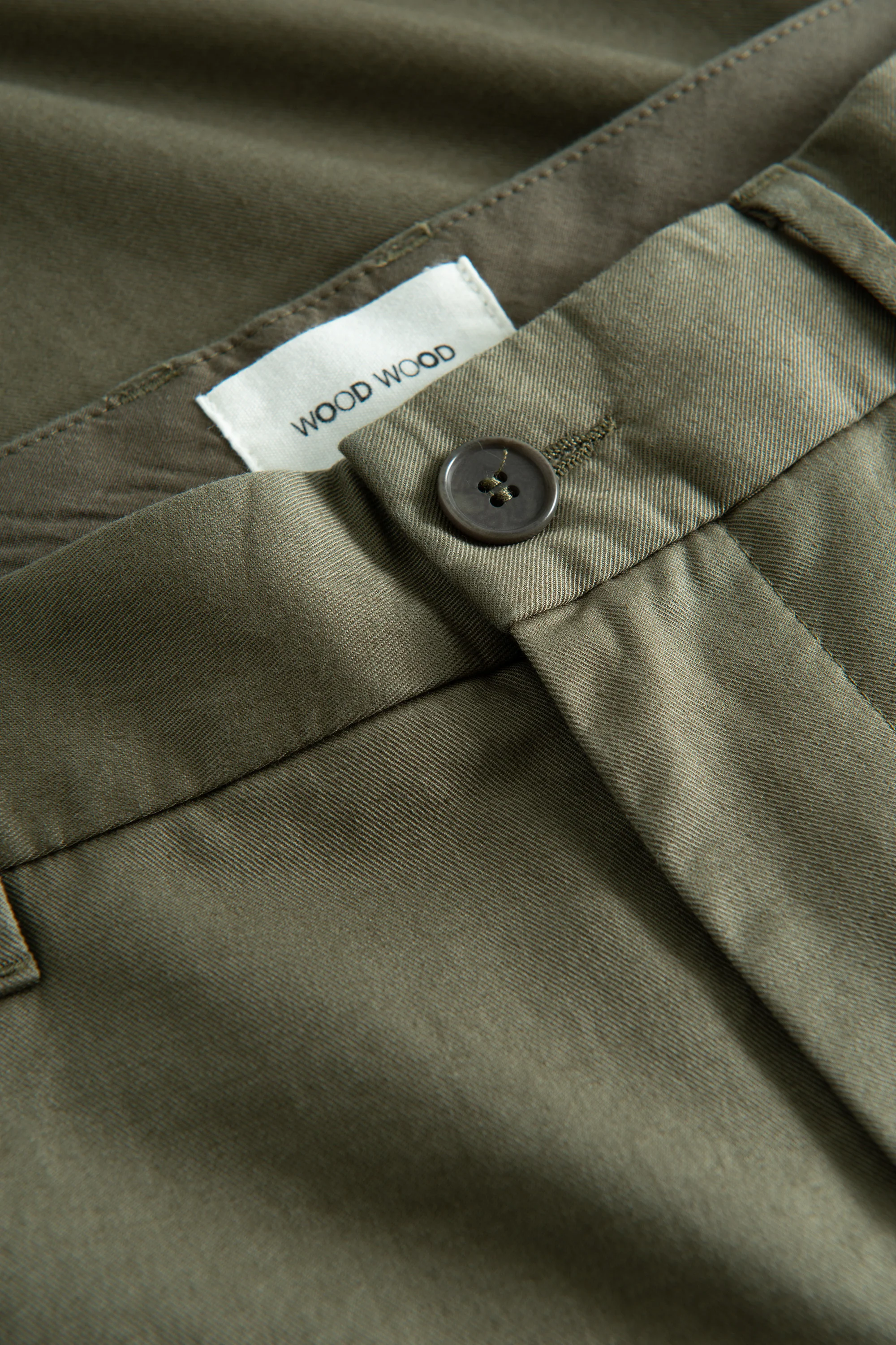 The Marcus trousers serve as a wardrobe essential; in a light twill organic cotton, they come in a slim fit, with color match corozo buttons, and metal zipper.