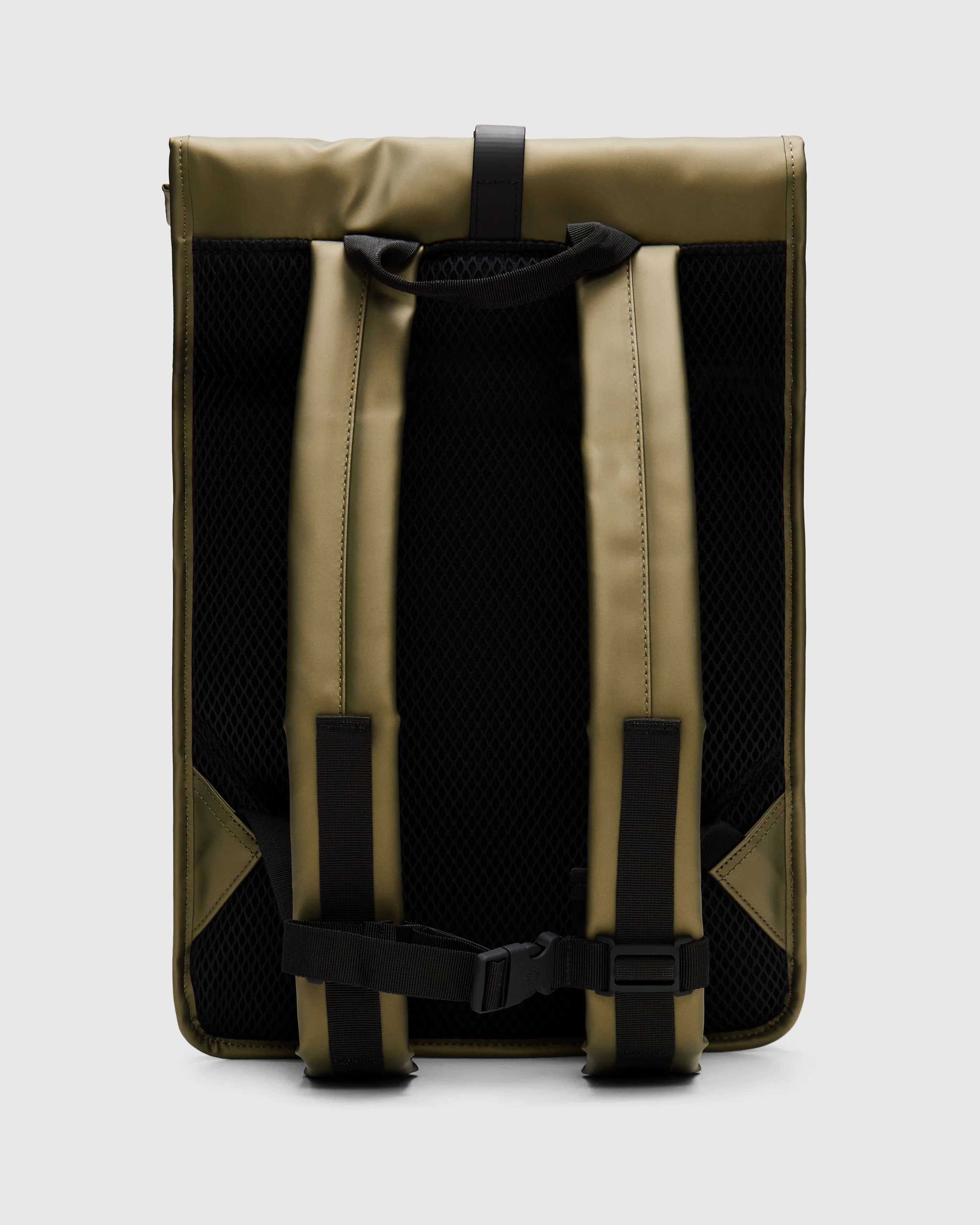 Rolltop Rucksack is cut in Rainsā signature waterproof PU fabric, engineered for carrying strength, durability, and a smooth feel.